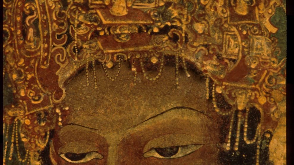 A Bodhisattva is a being on his way to enlightenment. ‘Vajrapani’ means ‘Bearer of the Thunderbolt’. With his glorious crown, he brings before us the majesty of the spirit.